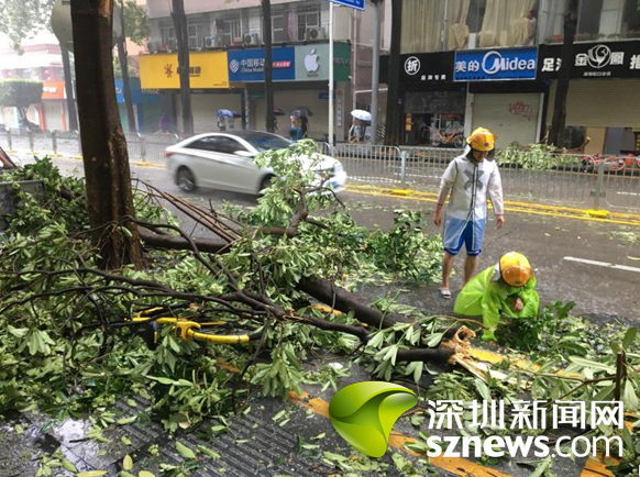 9月16日上午,蛇口街道南水社區(qū)黨委書(shū)記、婦聯(lián)主席李淑文,冒著可能被樹(shù)倒塌木砸傷的危險(xiǎn),浸泡在沒(méi)膝的雨水中幾個(gè)小時(shí)清理臺(tái)風(fēng)刮落路面的樹(shù)枝,讓來(lái)往車輛順利通行。