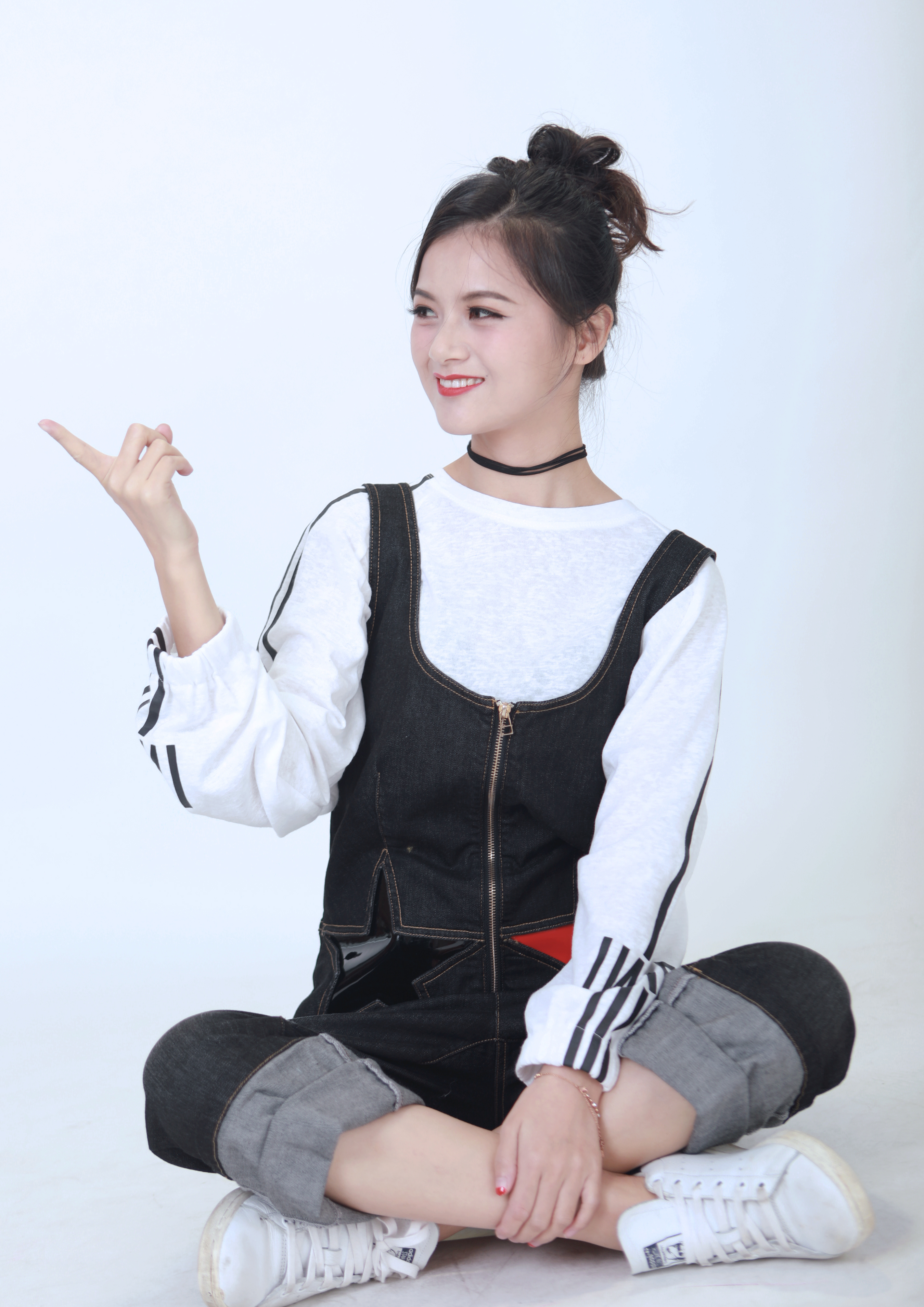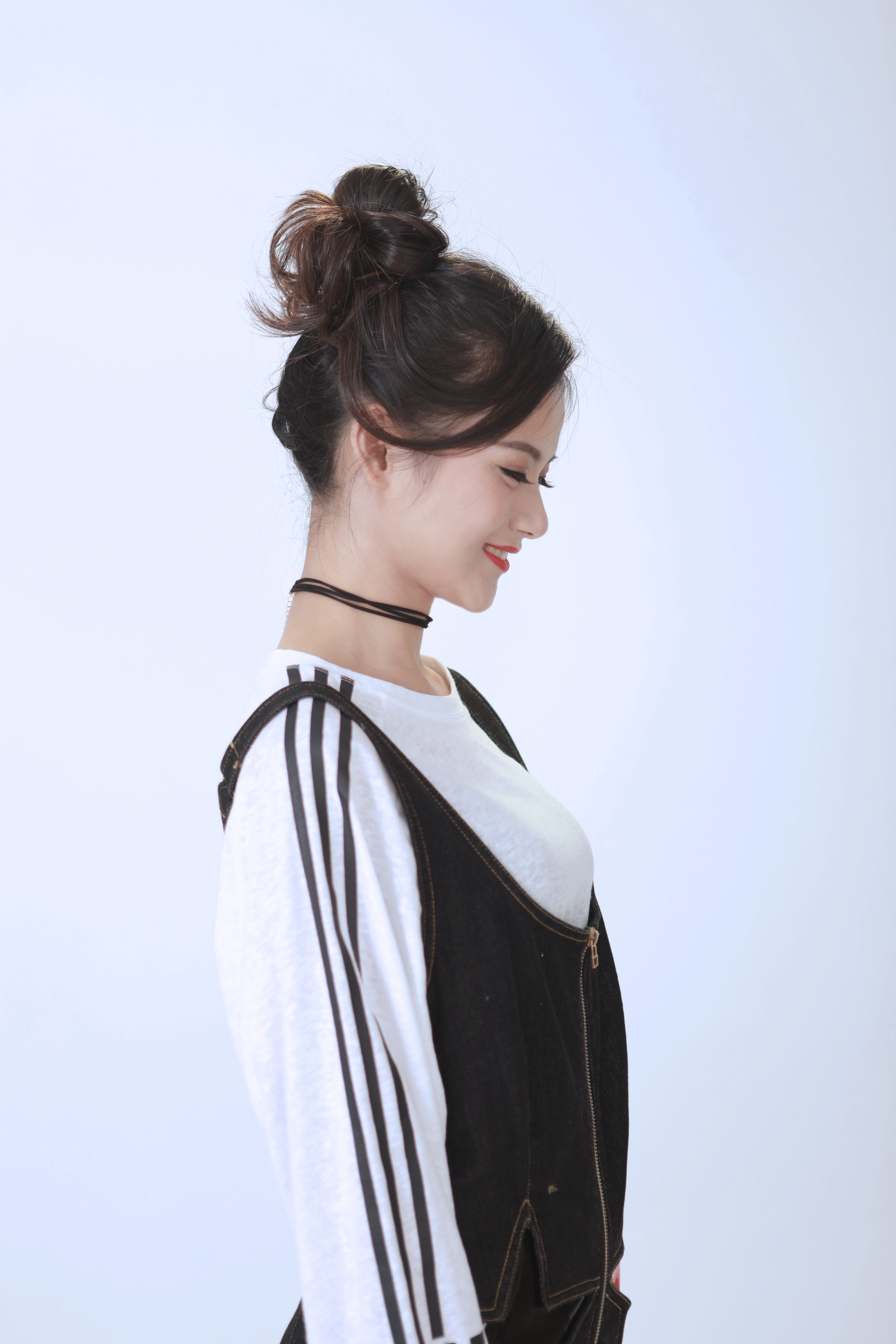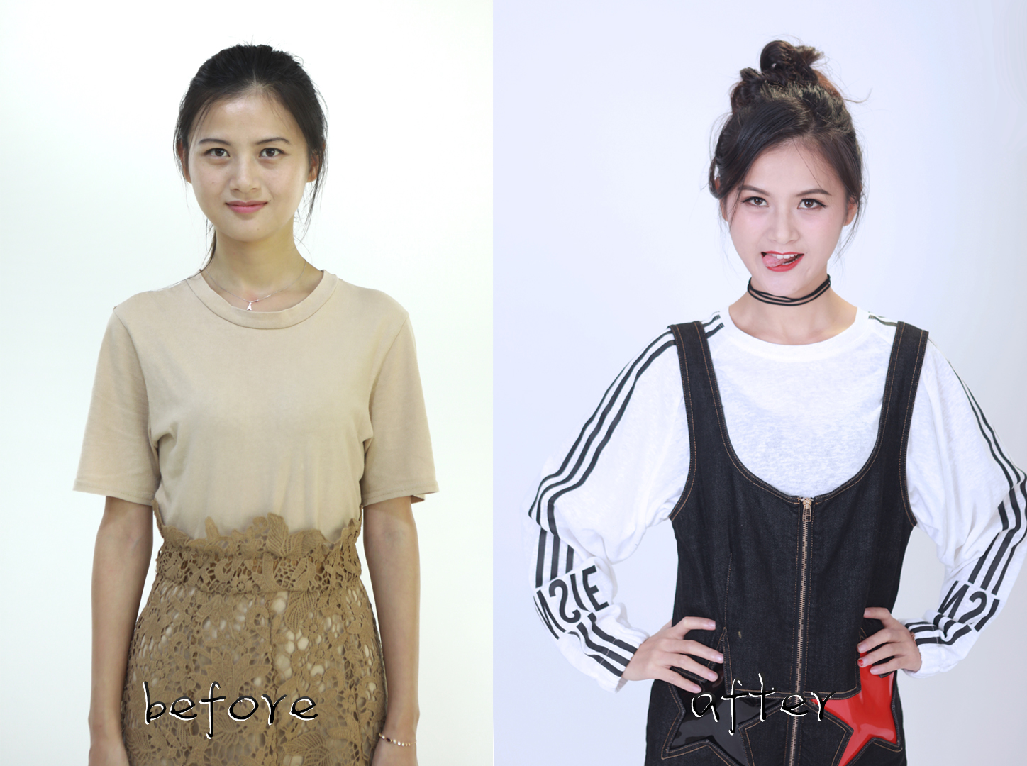 改造后的曉敏小仙女,高高的丸子頭顯得元?dú)鉂M滿,西瓜紅色系腮紅和唇色少女感滿分,搭配俏皮的背帶褲,我也好想和曉敏一起玩耍喲。