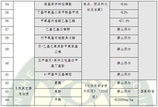 表4.15類化學(xué)防曬劑標(biāo)準(zhǔn)要求比對及評價(jià)結(jié)果