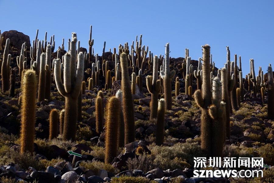 深圳新聞網(wǎng)訊 烏尤尼鹽沼中,有一個(gè)孤立的小山頭,猶如瀚海中的小島。島上長(zhǎng)滿(mǎn)巨大的仙人柱,據(jù)說(shuō)有的已經(jīng)生長(zhǎng)了上千年。這種形狀各異、耐鹽堿、耐干旱的熱帶植物豐富了鹽沼的風(fēng)光,構(gòu)成絕無(wú)僅有的世界奇觀(guān)。 李仁奇 攝