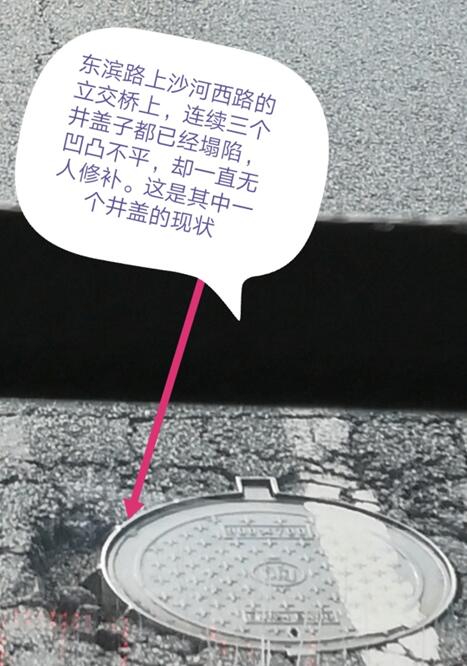 東濱路上沙河西路的立交橋上井蓋凹凸不平(供圖者@syh19667288)