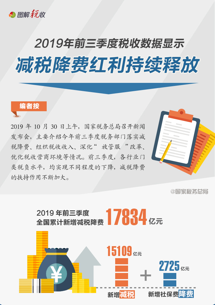 2019年前三季度稅收數(shù)據(jù)顯示減稅降費紅利持續(xù)釋放
