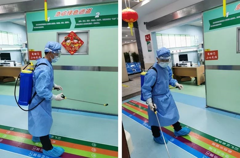 后勤管理科每天堅持對醫(yī)院所有公共院區(qū)域進行普通消殺,對與疫情相關的發(fā)熱科室、隔離病區(qū)等重點區(qū)域以及疑似病患所經(jīng)過的全部區(qū)域進行終末消殺。