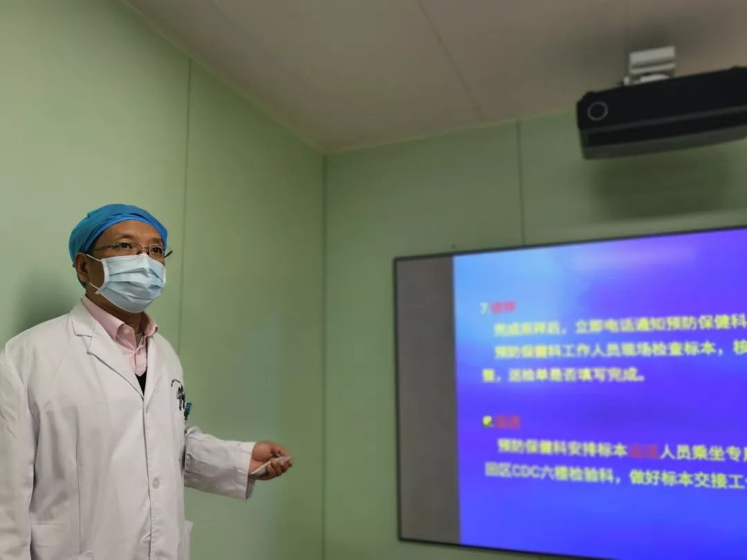 科室副主任、共產(chǎn)黨員靳淑雁已懷孕30多周,她挺著大肚子,忍著妊娠期疲勞,深入各個科室站著主持新冠病毒咽拭子采樣規(guī)范和送檢流程的培訓,每一場她都認真講解,內(nèi)容清晰,令在場的醫(yī)護人員十分感動。