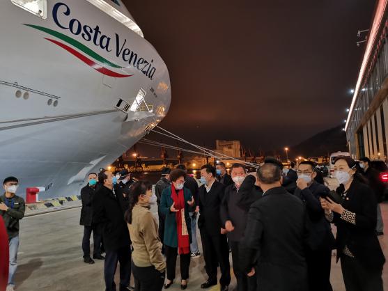 為確保1.26清晨電視電話會議順利召開,郵輪母港工程師連夜趕回公司調試設備;港口值班經(jīng)理尹犇接到海關急需手持式體溫測量儀的消息后,凌晨2點騎自行車前往公司將三臺手持式體溫測量儀交接到海關人員手中,為海關排查歌詩達威尼斯號郵輪旅客體溫做好保障工作,深夜疫情下的街道顯得格外冷情。