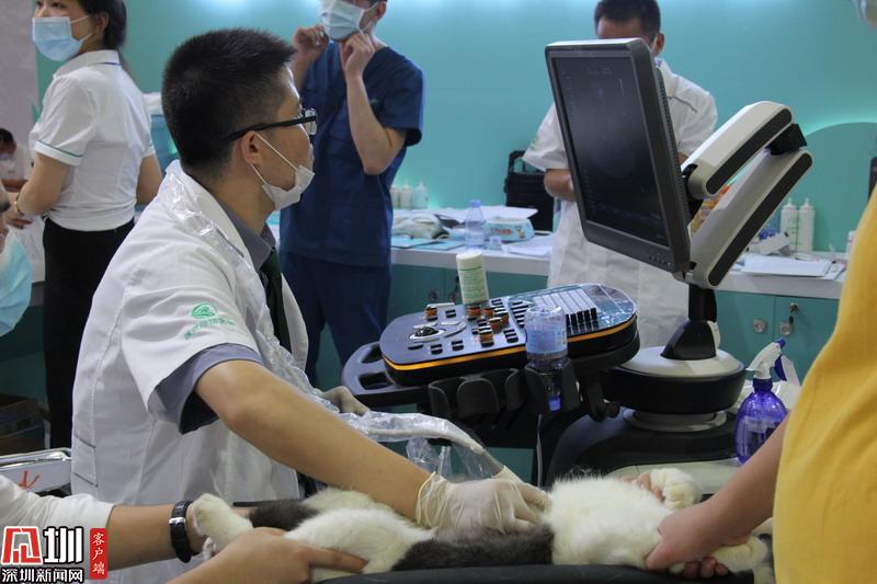 寵物醫(yī)生現(xiàn)場為寵物進行身體檢查。