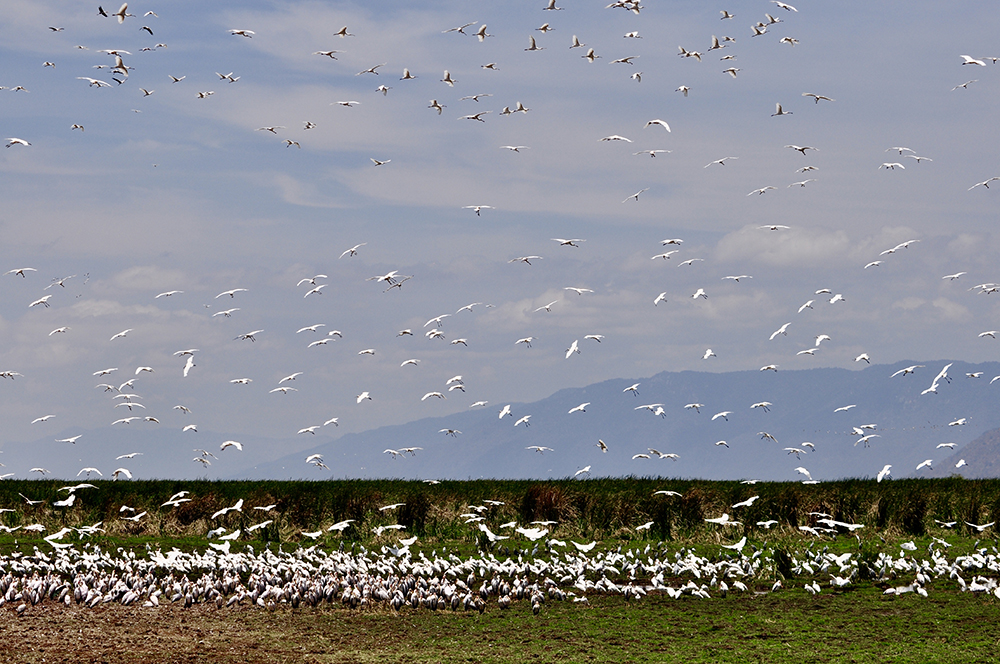 坦桑尼亞北部?jī)?nèi)陸湖。在阿魯沙西南96公里。由斷層陷落形成,南北長(zhǎng)48公里,東西寬16公里,面積325平方公里。李仁奇 攝
