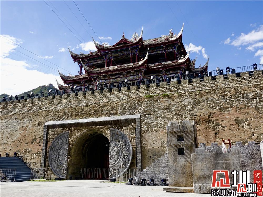 松潘古城分內(nèi)、外兩城,內(nèi)城平面跨崇山,依山順勢(shì)略呈三角形,城墻總長(zhǎng)6.2公里,用本地?zé)频那啻u砌成墻身,內(nèi)填土石,高12.5米,厚12余米,以糯米、石灰、桐油熬制的灰漿勾縫,十分堅(jiān)固。各城門以大塊規(guī)則的長(zhǎng)方條石券拱而成。李仁奇攝