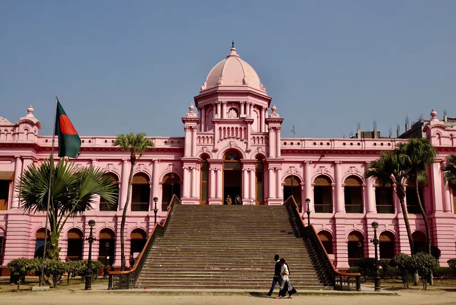 距孟加拉恒河渡口不遠的地方有一座粉紅色宮殿式的豪華建筑。那是1872年一位名叫阿赫桑曼濟勒的地主在法國人留下的倉房基礎上改建的私邸,后來曾在一次龍卷風襲擊時受創(chuàng)。李仁奇 攝
