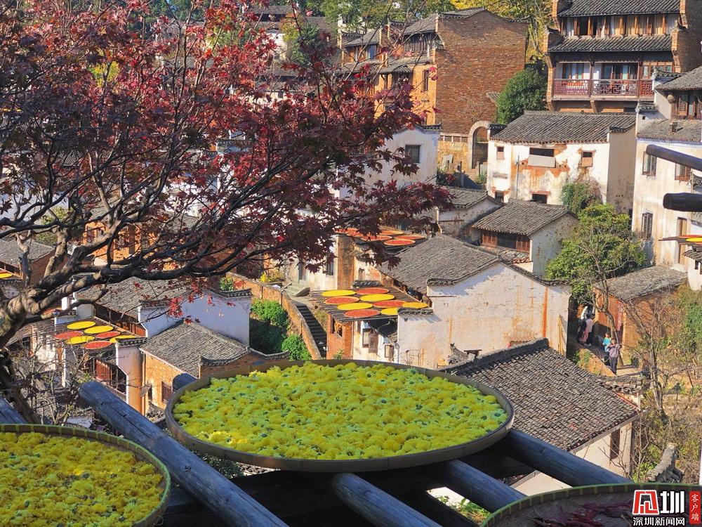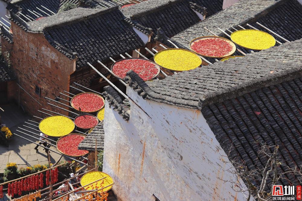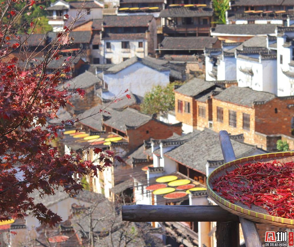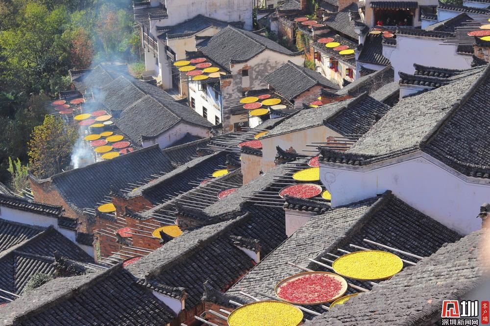 見(jiàn)圳客戶(hù)端·深圳新聞網(wǎng)2020年11月25日訊 江西婺源縣篁嶺村獨(dú)特的“曬秋”農(nóng)俗景觀(guān)。篁嶺村位于江西省上饒市婺源縣東北部,是著名的“曬秋”文化起源地,也是一座距今近六百年歷史的徽州古村。每當(dāng)日出山頭,數(shù)百棟徽派古民居在百米落差的坡面錯(cuò)落排布,整個(gè)山間村落徽式民居土磚外墻與曬架上五彩繽紛豐收成果組合,繪就出“曬秋”農(nóng)俗特色景觀(guān)。
