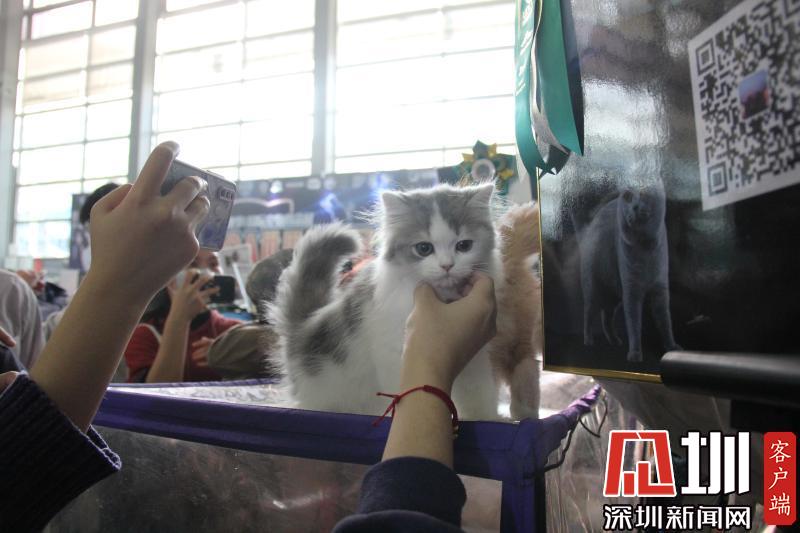 CCA世界名貓深圳積分賽現(xiàn)場(chǎng),一只貓咪在等待接受評(píng)委檢查。