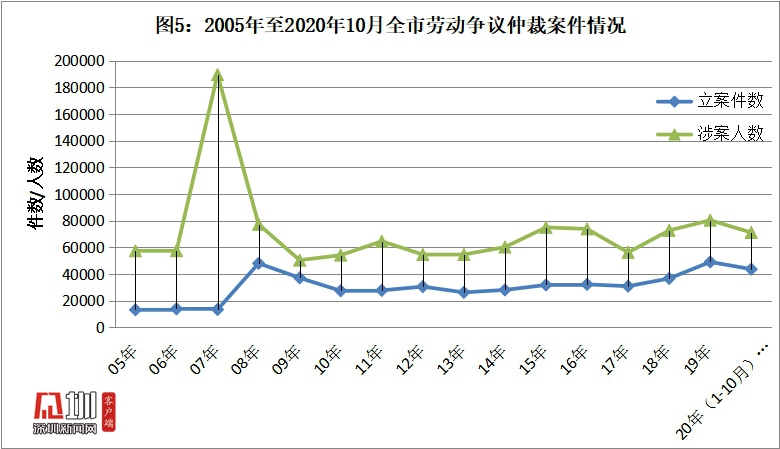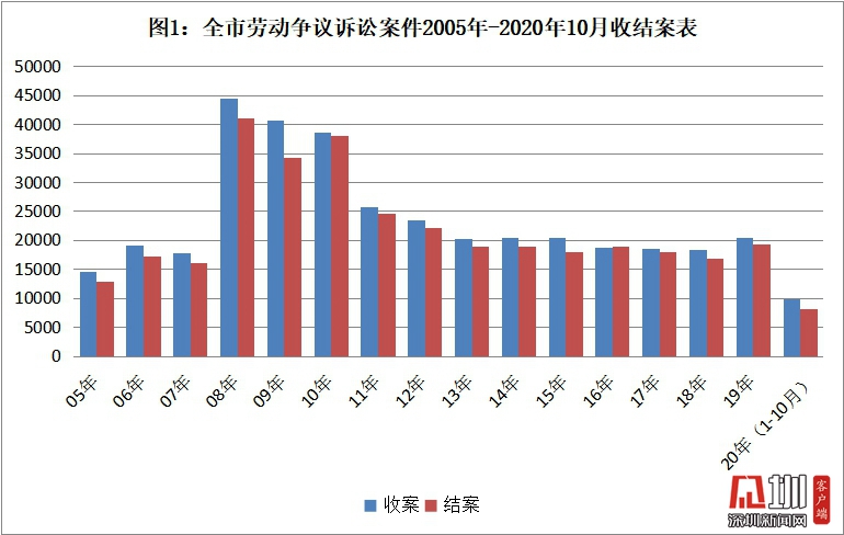 深圳市中級人民法院勞動爭議審判庭(以下稱深圳中院勞動庭)于2005年4月成立,是全國法院系統(tǒng)第一家專業(yè)審判庭。深圳部分基層法院也相繼成立專業(yè)審判庭或指定某一派出法庭集中審理勞動爭議案件。勞動爭議糾紛受經(jīng)濟發(fā)展水平、國家政策、就業(yè)環(huán)境等影響較大,一定程度上是經(jīng)濟發(fā)展和社會和諧度的晴雨表。深圳企業(yè)林立,被喻為“世界工廠”,大量的外來務(wù)工人員在本市就業(yè),深圳法院勞動爭議十五年來的審理情況反映著我國經(jīng)濟最活躍地區(qū)不斷變化的勞資關(guān)系狀況。