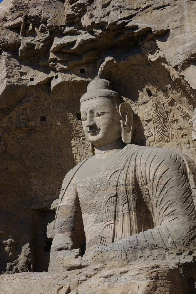 從外面看云岡石窟,經歷1500年時光的風雨侵襲,依然保持著挺拔的姿態(tài),不得不佩服古人當時的建筑工藝。