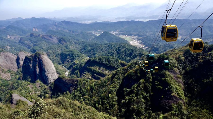 乘索道或步行登上八角寨觀景臺(tái)可以俯瞰崀山丹霞的全貌。李仁奇 攝