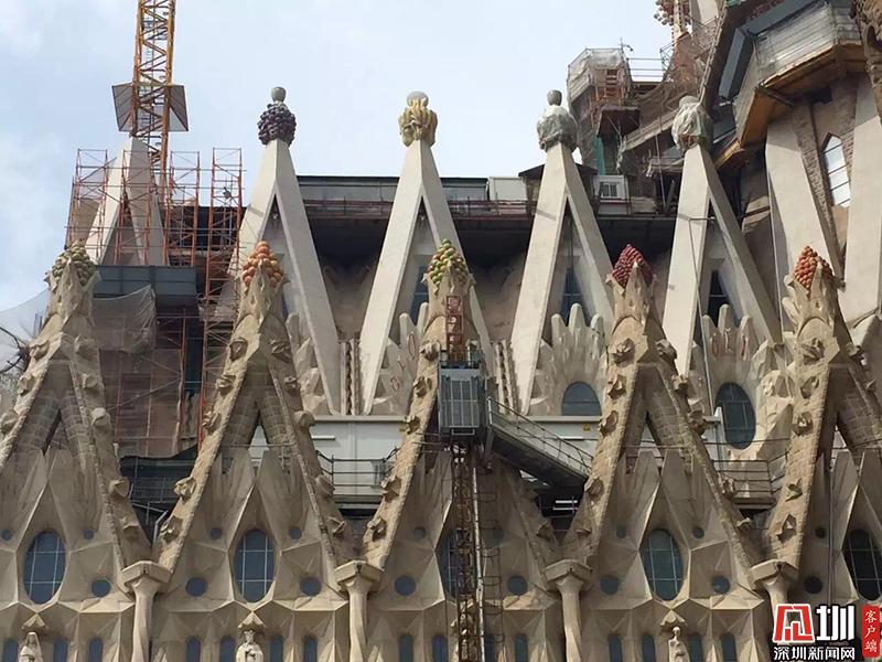 高迪73歲去世時,教堂僅完工了不到四分之一。圣家堂的建設進展緩慢,僅靠個人捐贈和門票收入維系,中間又受西班牙內(nèi)戰(zhàn)干擾,在二十世紀五十年代建造時斷時續(xù)。圖為圣家族大教堂。李仁奇 攝