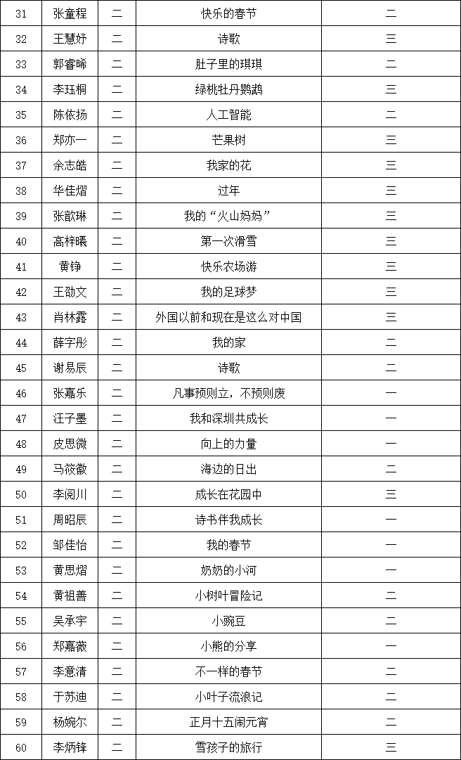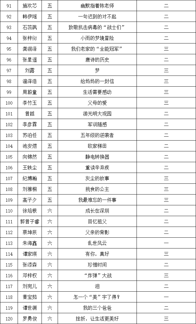 自2021年1月,活動(dòng)征稿啟動(dòng)以來,獲得了深圳市廣大中小學(xué)生、教師、文學(xué)愛好者的熱烈響應(yīng)積極參與,吸引了深圳百余所學(xué)校的上萬人關(guān)注報(bào)名。現(xiàn)公布南山實(shí)驗(yàn)教育集團(tuán)前海港灣學(xué)校校園專場晉級復(fù)賽名單如下:
