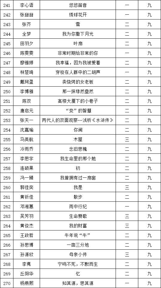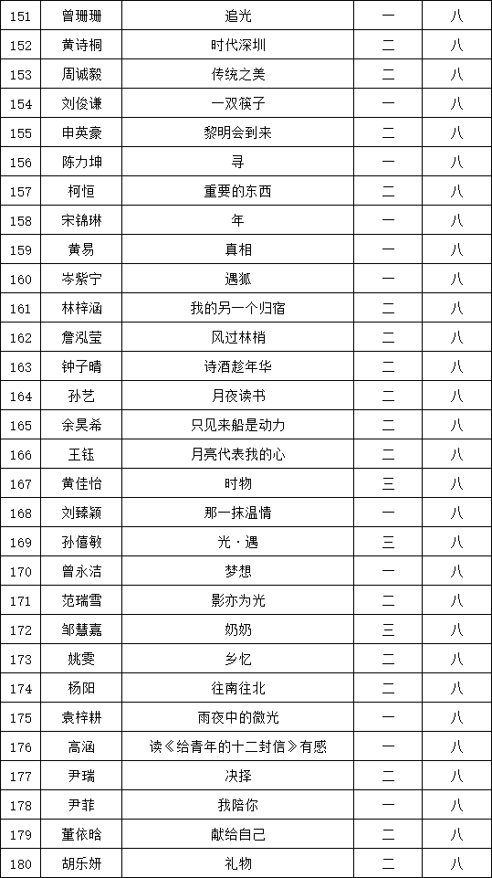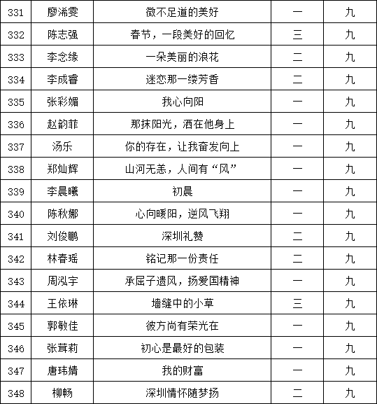 自2021年1月,活動(dòng)征稿啟動(dòng)以來,獲得了深圳市廣大中小學(xué)生、教師、文學(xué)愛好者的熱烈響應(yīng)積極參與,吸引了深圳百余所學(xué)校的上萬人關(guān)注報(bào)名?,F(xiàn)公布福永中學(xué)晉級(jí)復(fù)賽名單如下: