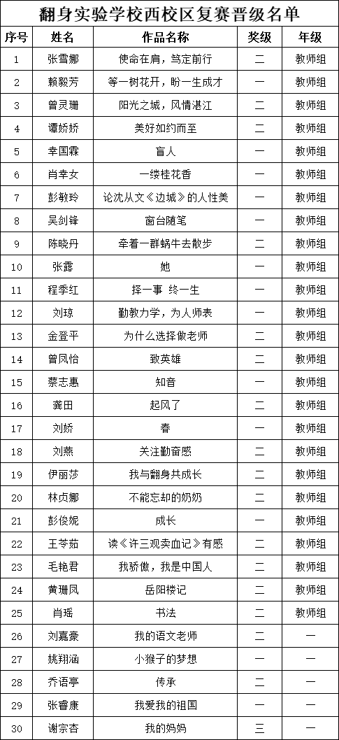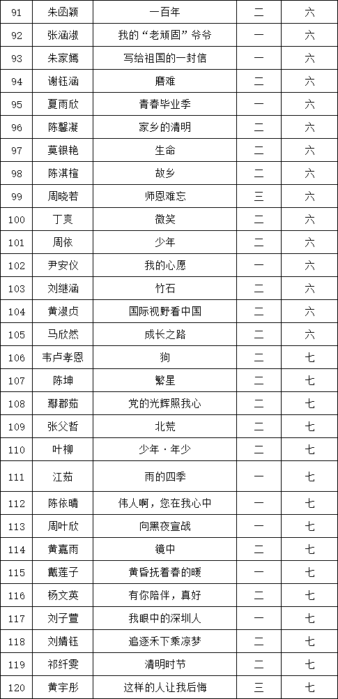 自2021年1月,活動(dòng)征稿啟動(dòng)以來,獲得了深圳市廣大中小學(xué)生、教師、文學(xué)愛好者的熱烈響應(yīng)積極參與,吸引了深圳百余所學(xué)校的上萬人關(guān)注報(bào)名?,F(xiàn)公布翻身實(shí)驗(yàn)學(xué)校西校區(qū)晉級(jí)復(fù)賽名單如下:
