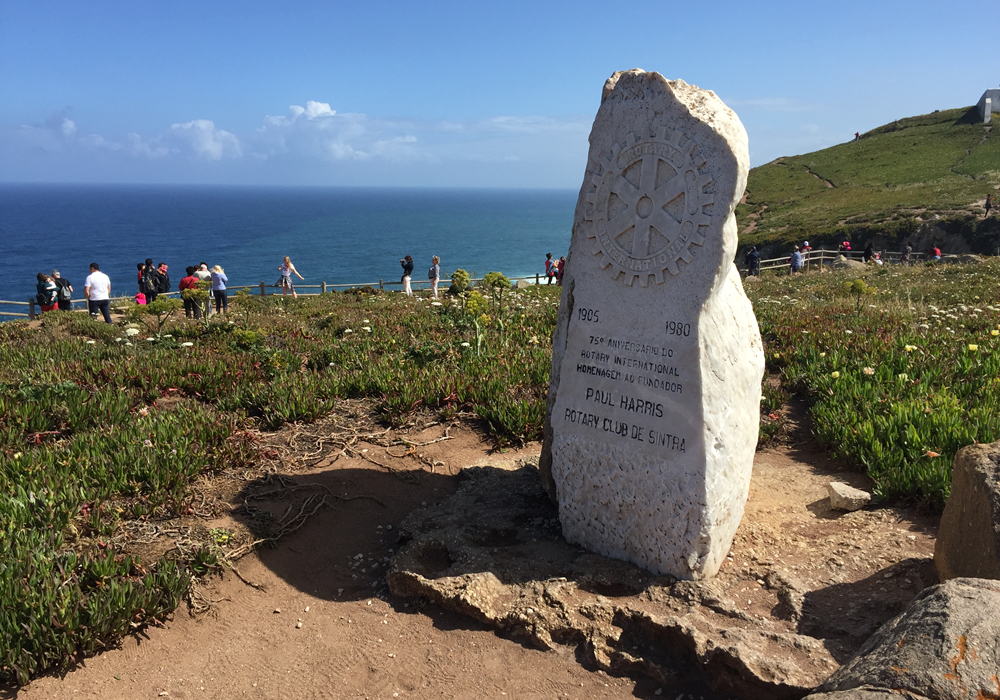 不遠處刻著航海輪舵形狀的石牌是辛特拉扶輪社為紀念國際扶輪社的創(chuàng)建者——美國人保羅?哈里斯而立的。李仁奇 攝