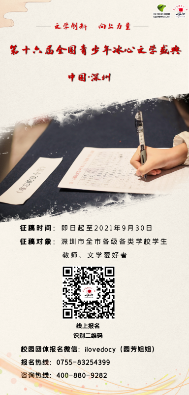 全國青少年冰心文學盛典組委會中國·深圳官網(wǎng)及公眾號發(fā)布