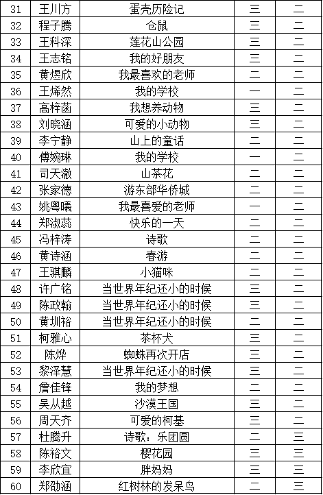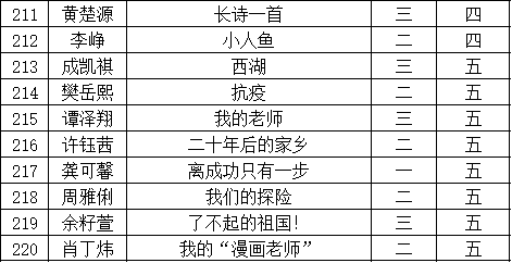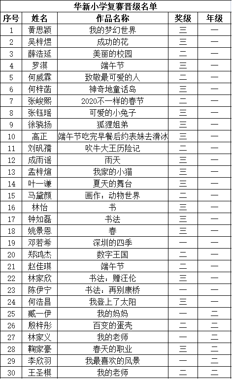 自2021年1月,活動(dòng)征稿啟動(dòng)以來(lái),獲得了深圳市廣大中小學(xué)生、教師、文學(xué)愛(ài)好者的熱烈響應(yīng)積極參與,吸引了深圳百余所學(xué)校的上萬(wàn)人關(guān)注報(bào)名。現(xiàn)公布福田區(qū)華新小學(xué)晉級(jí)復(fù)賽名單如下: