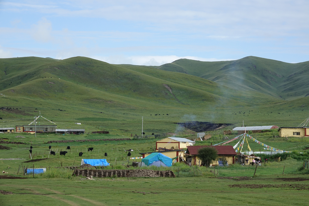 遠(yuǎn)處群峰迭起,近處河流穿梭,徜徉在中間的牛羊悠閑地吃著草兒,這讓我們感受到了草原的另一種美!李仁奇 攝