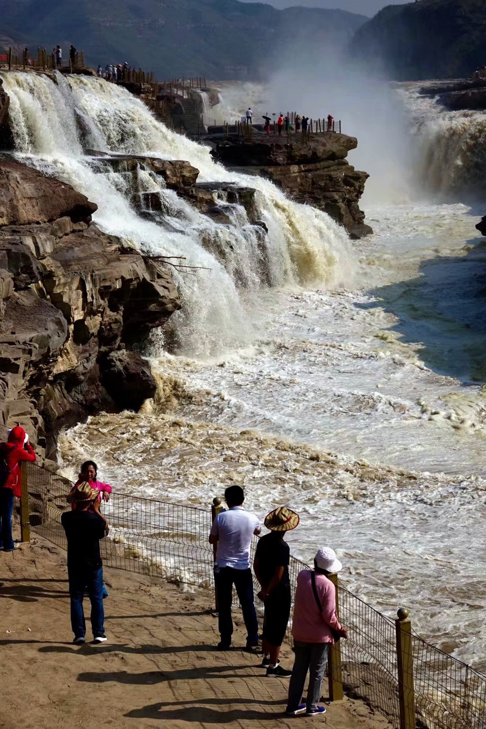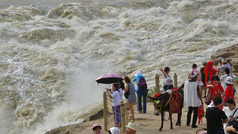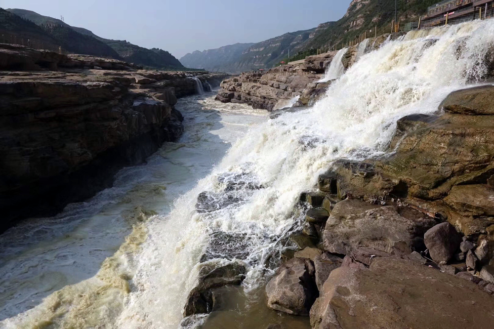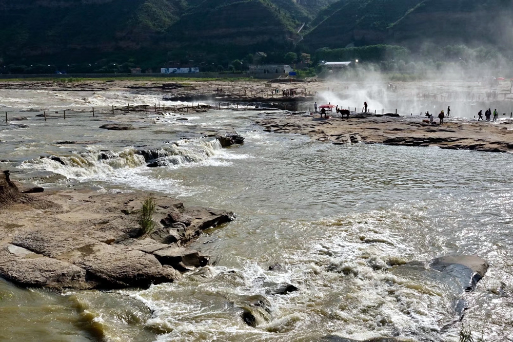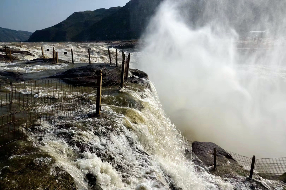 瀑布上游黃河水面寬300米,在不到500米長的距離內,被壓縮到20-30米的寬度。1000立方米/秒的河水,從20多米高的陡崖上傾注而下,形成”千里黃河一壺收”的氣概。這也是第四套人民幣50元紙幣背面的取景地。李仁奇 攝