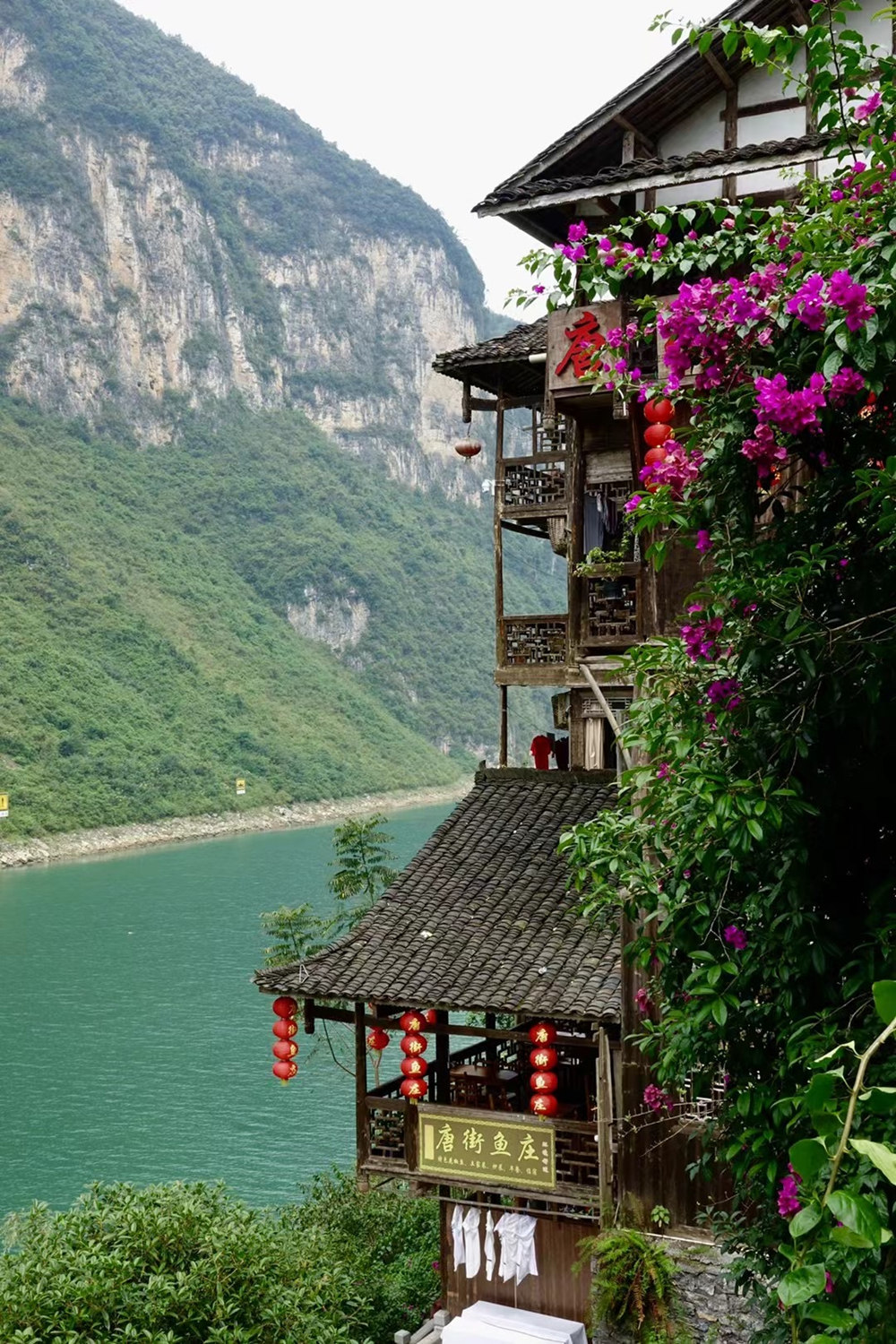 吊腳樓群臨江而立,由木材支撐穿斗而成的梁架結(jié)構(gòu),樓下堆貨或開(kāi)鋪?zhàn)?,樓上住人,四面鋪?zhàn)呃龋堑湫偷耐翗?。李仁?攝