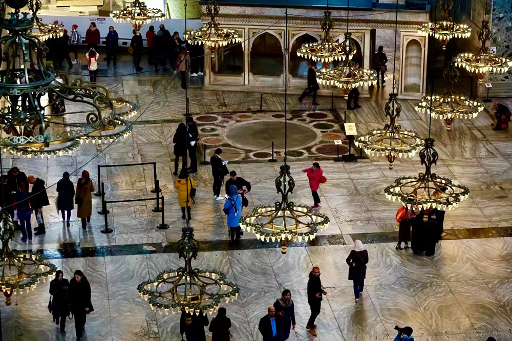 整個(gè)大堂都掛滿了六瓣花形的清真寺風(fēng)格吊燈。李仁奇 攝
