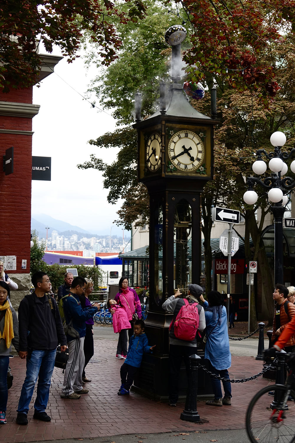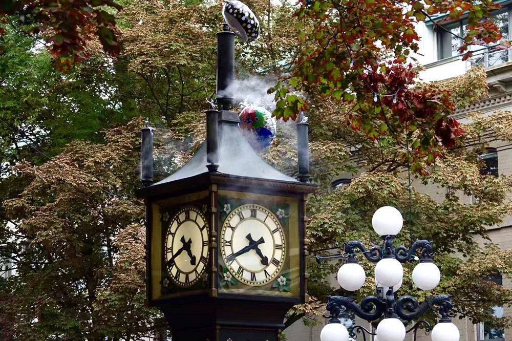 在蓋士鎮(zhèn)水街和坎貝爾街的交口處有一座據(jù)說是目前世界上唯一的蒸汽鐘,它是溫哥華的地標(biāo)性建筑,鎮(zhèn)市之寶。李仁奇 攝