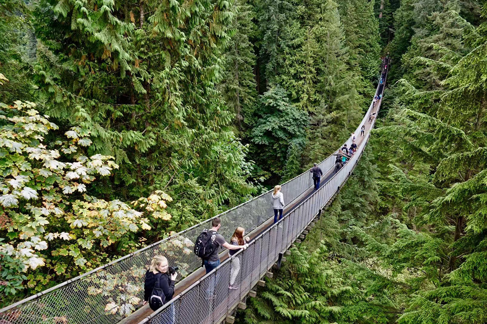 1889年,有人為了保護(hù)原始森林不受砍伐購買了這片土地,并修建了卡佩蘭奴吊橋。連他自己都沒有想到這塊地方成了今天來溫哥華旅游的人必來的旅游勝地。李仁奇 攝