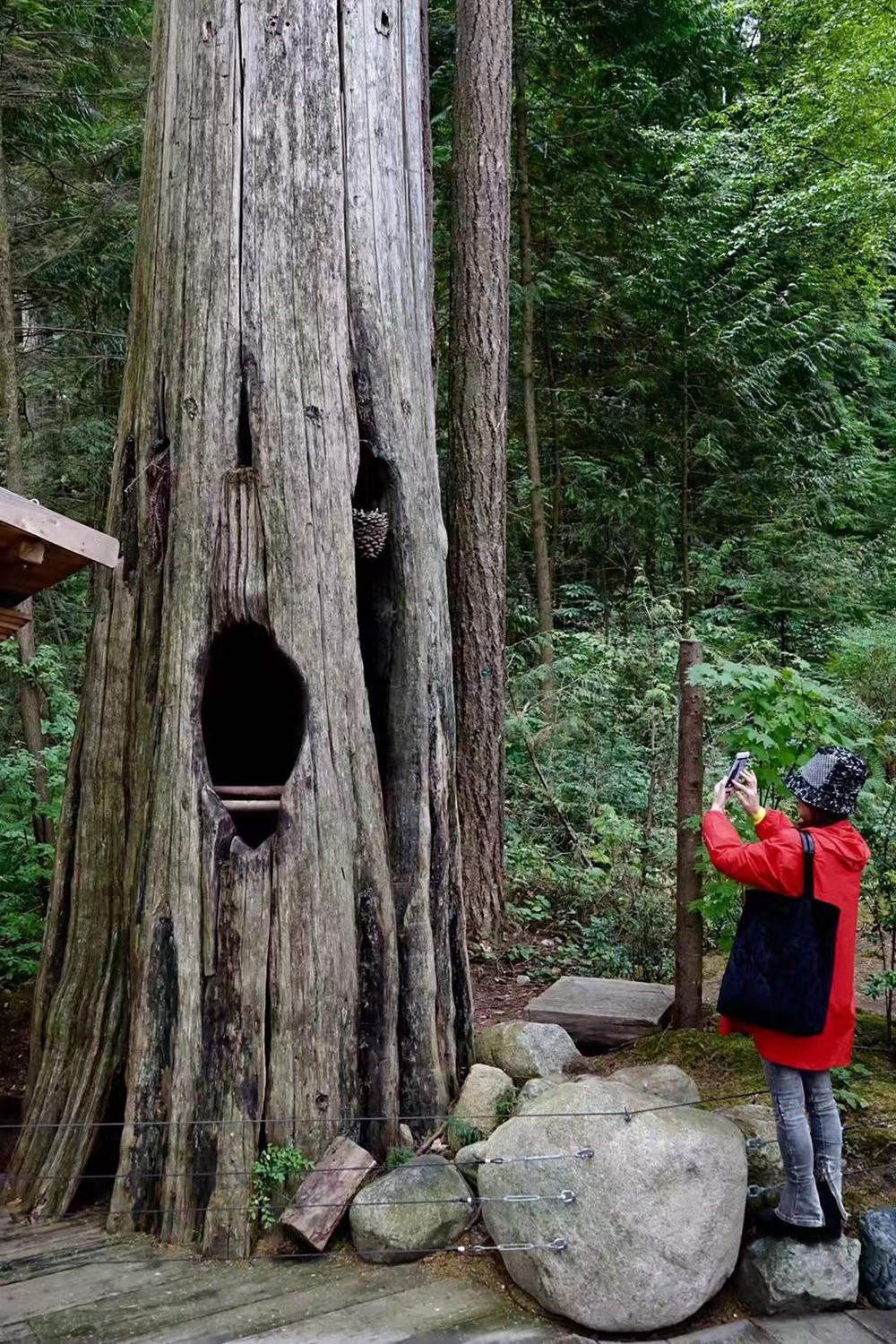 吊橋公園里面很多原始樹木的年齡比他們現(xiàn)在所屬的國度和城市的年紀(jì)還要大。直徑超過一米的樹彼彼皆是,其腰圍連兩個(gè)成年男人人都難以合抱過來。李仁奇 攝