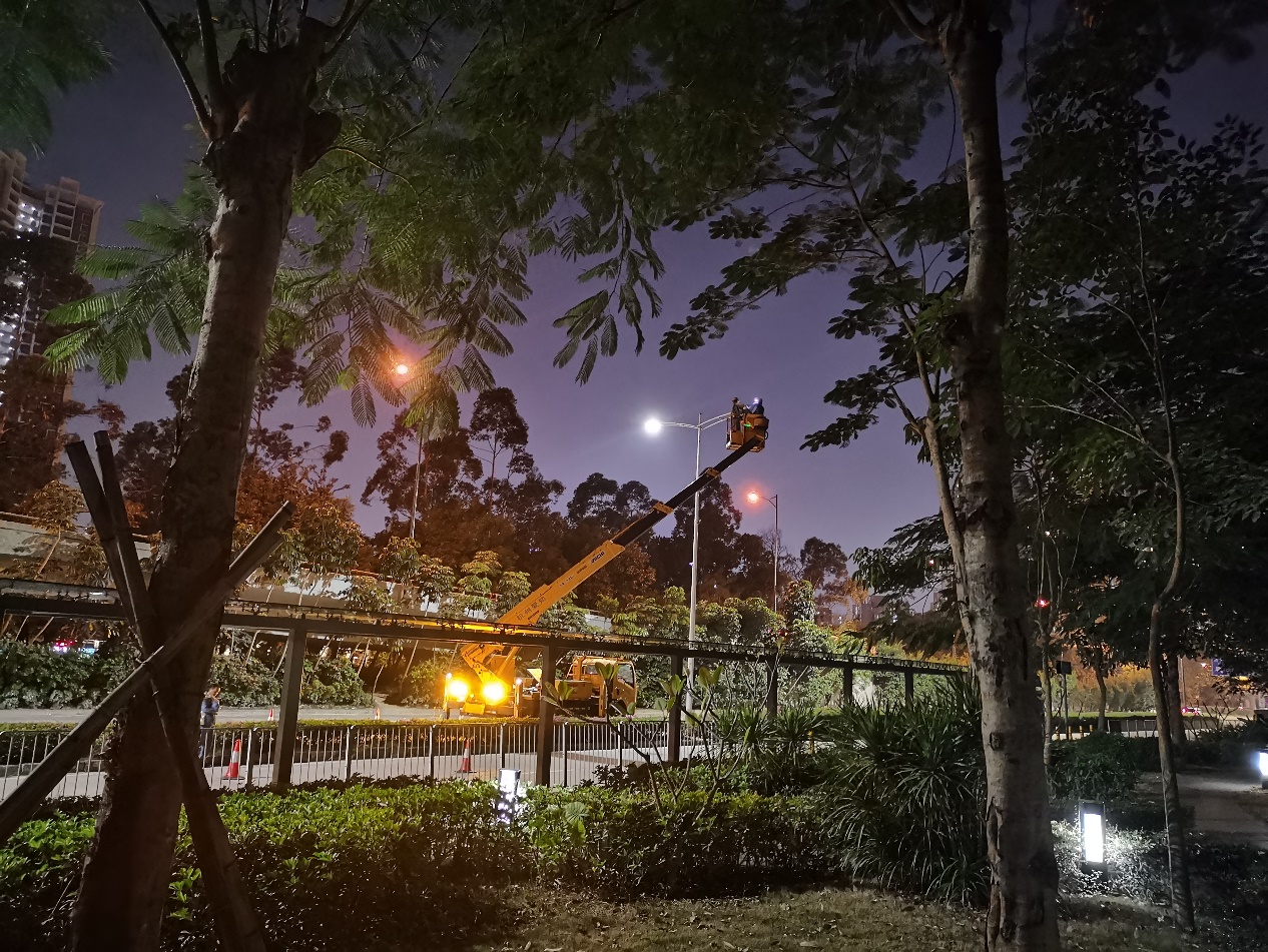 11月25日晚上8點,記者在現(xiàn)場看到,該路段之前幾處破損、不亮的景觀燈已換好燈泡燈箱。同時,在該路段外側(cè)馬路上,有著身穿“深圳照明”馬甲的工作人員正在對路燈進(jìn)行更換檢修。“這個之前有一些壞掉的或者不那么亮的燈泡,我們換新的之后,亮度會提升一些,也會對小路的光源進(jìn)行一個很好地補充”。相關(guān)工作人員告訴記者,后續(xù)也可能會對小路的景觀燈進(jìn)行升級,改換成高的路燈,這還需要下一步的規(guī)劃設(shè)計。