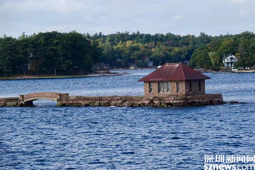 這島是以前紐約旅業(yè)大王喬治?博登特(George Charles Boldt)1900年買(mǎi)來(lái)送給妻子的禮物,他在島的中心高地建筑了一座古堡,又在心島的末端水邊,建一座小堡孝敬岳母,兩者有小橋相連。李仁奇 攝