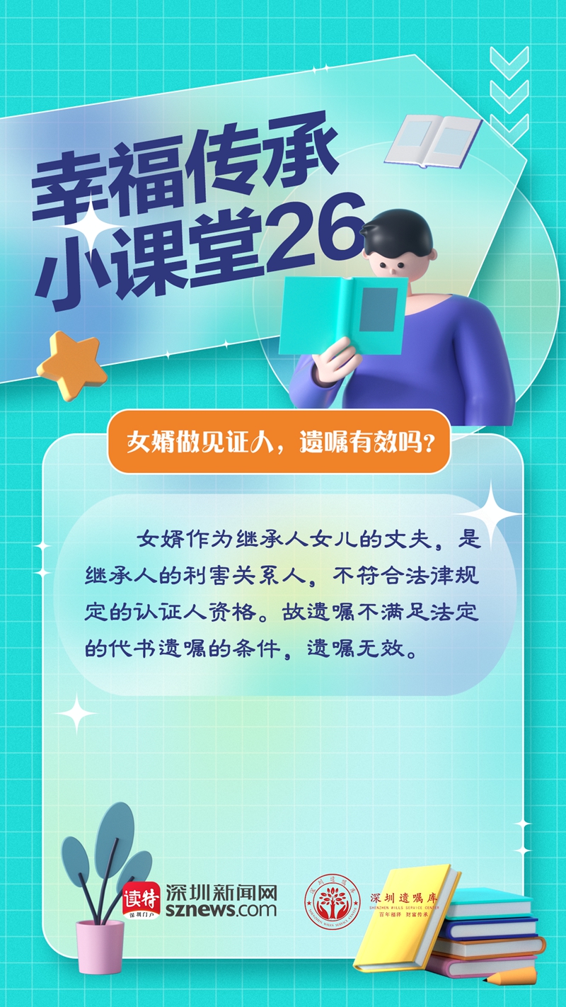 讀特客戶端·深圳新聞網(wǎng)2023年2月9日訊(記者 翁任瑩 張玲)女婿做見證人,這份代書遺囑被判無效,為什么?由廣東嘉得信律師事務所和深圳新聞網(wǎng)聯(lián)合開設的幸福傳承小課堂第26期,我們來分析一下遺囑無效的原因。