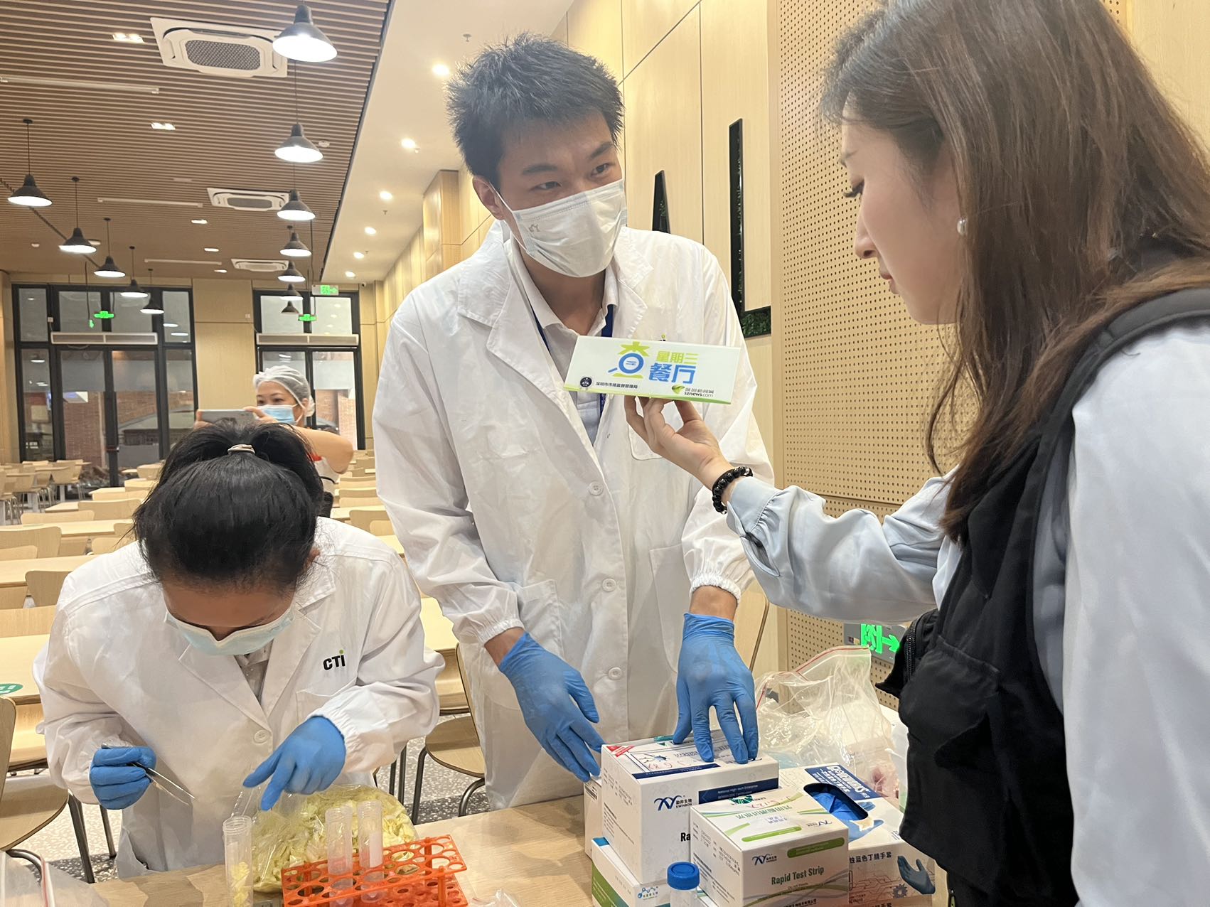 執(zhí)法行動(dòng)進(jìn)行的同時(shí),快檢人員也來到現(xiàn)場(chǎng)對(duì)食材進(jìn)行抽樣檢測(cè)。據(jù)介紹,本次抽樣檢查的食材樣品均合格。