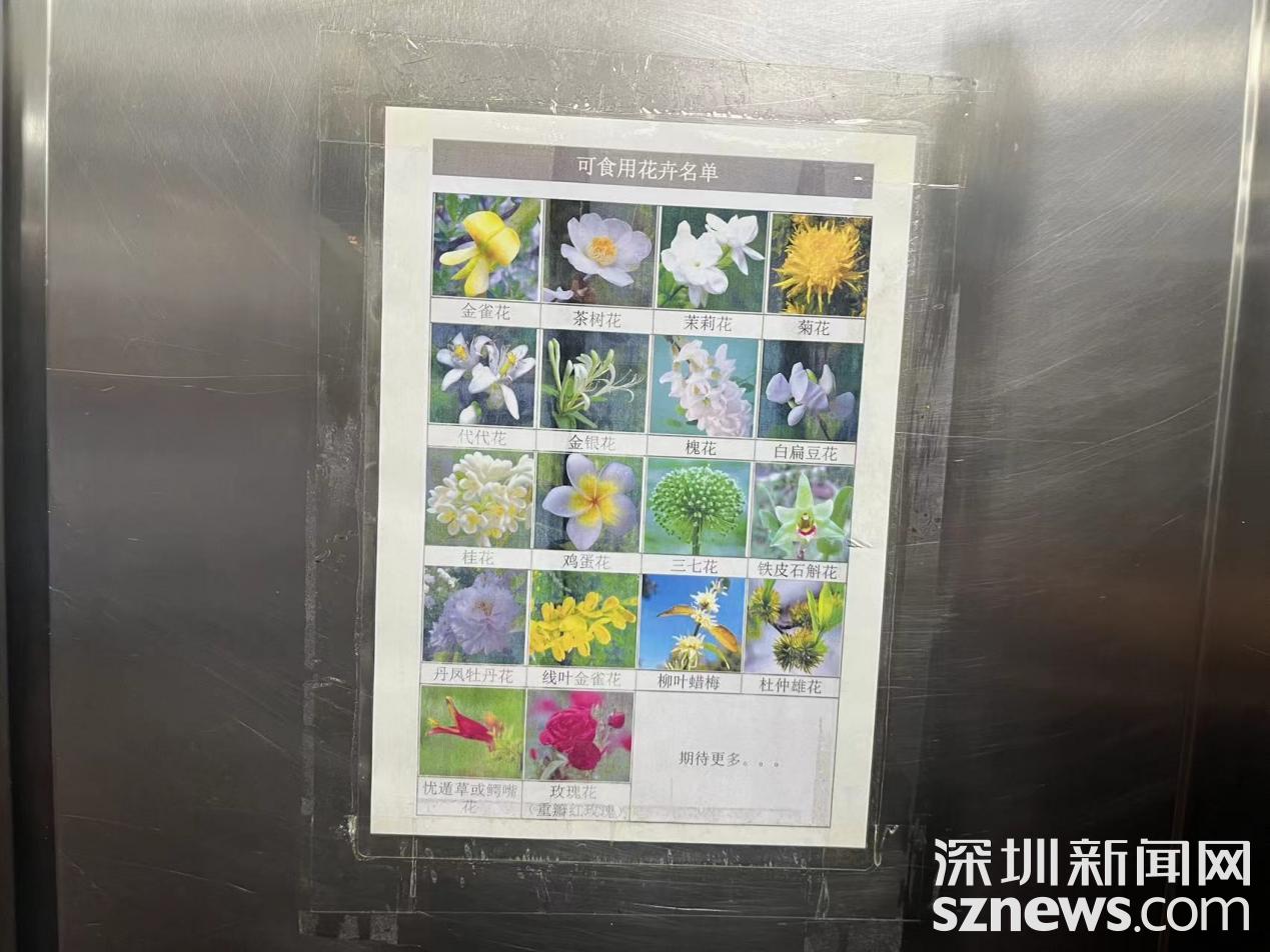 后廚分為預(yù)處理區(qū)、操作區(qū)、冷食專(zhuān)間、留樣區(qū)、糕點(diǎn)間、洗消區(qū)等區(qū)域。在后廚操作區(qū),執(zhí)法人員隨機(jī)查看調(diào)料標(biāo)簽,均在保質(zhì)期內(nèi);冰箱食材貼有相應(yīng)標(biāo)簽,且表面特別張貼了“可食用花卉名單”。專(zhuān)間內(nèi),冰柜中食材均有相應(yīng)標(biāo)簽,且分區(qū)域存儲(chǔ),無(wú)混放現(xiàn)象;留樣冰箱中的樣品重量、時(shí)間、標(biāo)簽及臺(tái)賬記錄均符合要求。