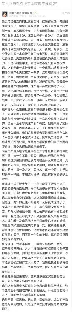 8. 帖文《怎么社康就變成了中醫(yī)理療推銷(xiāo)店?》