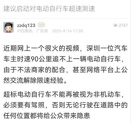 12. 帖文《建議啟動(dòng)對(duì)電動(dòng)自行車(chē)超速測(cè)速》