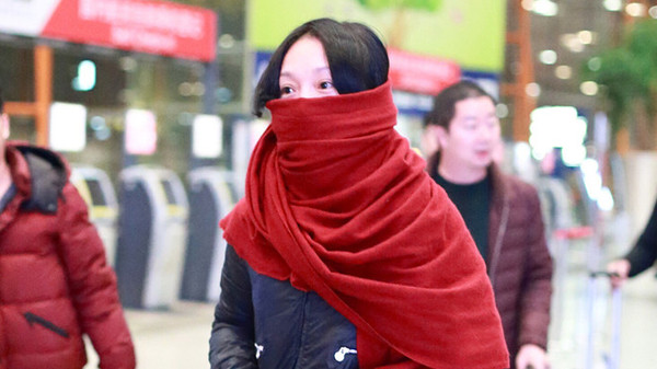 周迅演繹紅色圍巾的另類戴法 大步流星氣場(chǎng)滿分