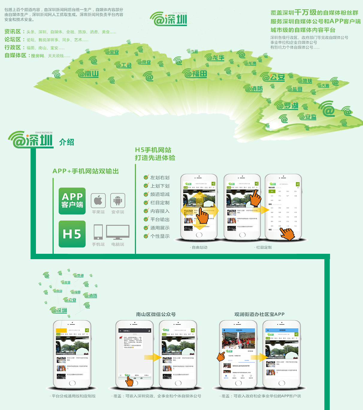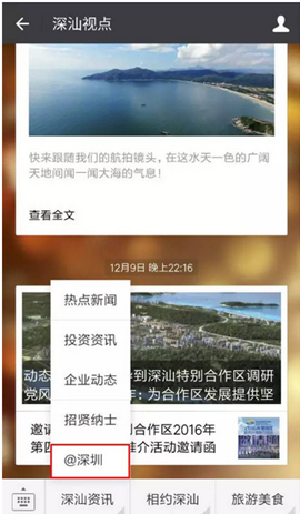 入駐的黨政自媒體:之前入駐的深圳發(fā)布、市交委、公安發(fā)布、政協(xié)、民政、公積金管理中心、市質(zhì)監(jiān)、工務(wù)署、司法、衛(wèi)計委、口岸辦、人社、文博會之外,近期入駐的大V伙伴還有深汕視點、深圳通等。各區(qū)(新區(qū))官方微信公眾號均組團入駐。