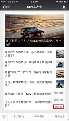 近日,深圳前海行天下汽車服務(wù)有限公司官方微信“SUV車友會”正式入駐“@深圳”平臺。