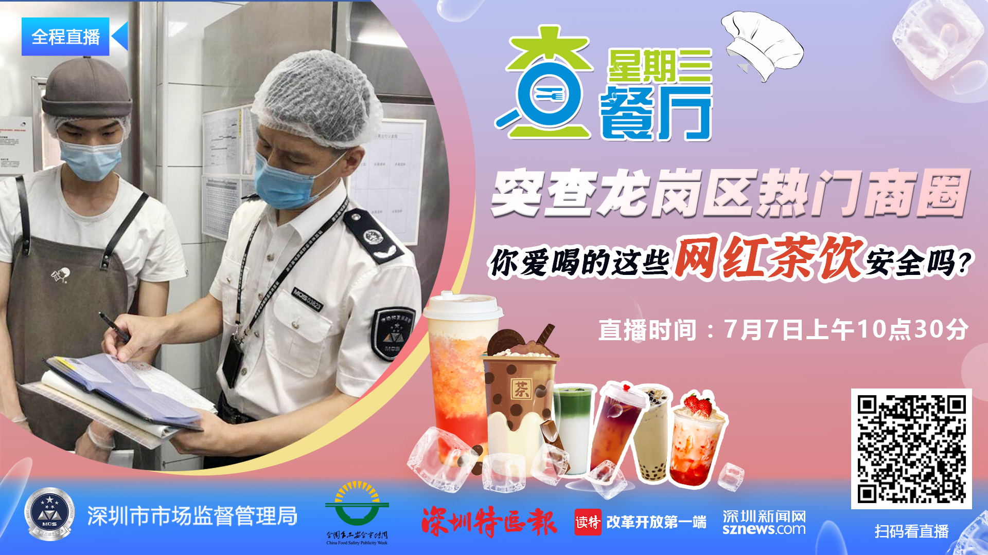 “星期三查餐廳,讓深圳人吃的更放心”。8月2日,有媒體曝光“奈雪的茶”存在食品安全隱患,在社會上引起廣泛關(guān)注,同時正值濕米粉中毒事故高發(fā)期,為回應(yīng)民生熱點,科普食安知識,8月4日,“星期三查餐廳”專項執(zhí)法行動突擊檢查位于鹽田區(qū)大梅沙的“奈雪的茶”飲品店和經(jīng)營濕粉類餐飲店--海月居海鮮餐廳。